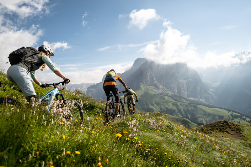 In inverno si gira con gli sci, ma d’estate il Sella si conquista... in sella. Il Giro dei Quattro Passi è un must assoluto per chi vive di trail. E che trail!