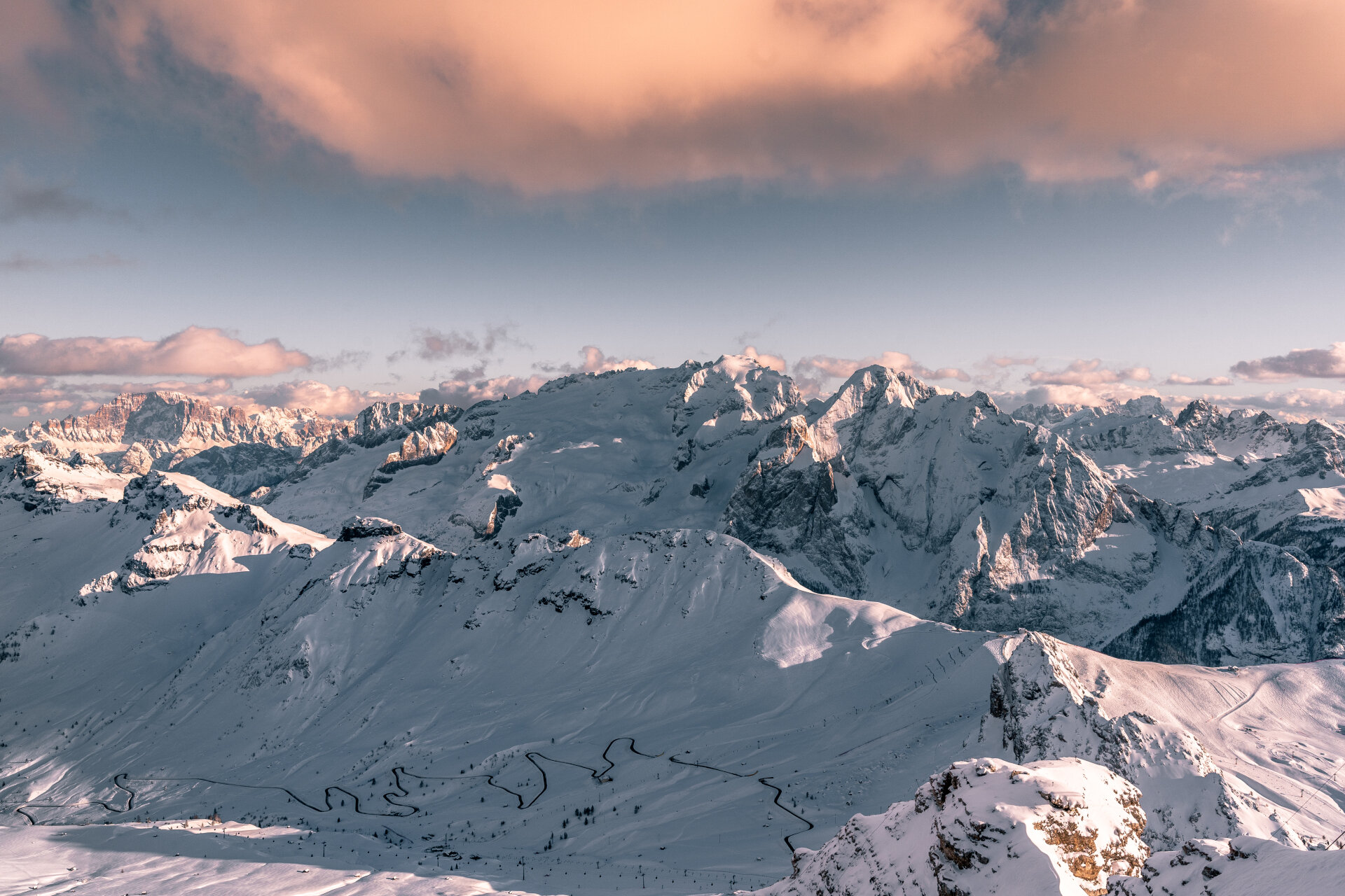 Da Canazei con gli impianti raggiungi Pecol; ti porti in quota prendendo la cabinovia Toè oppure la funivia Col dei Rossi. Seguendo la pista Kristiania arrivi alla stazione a valle della seggiovia Sass Becé. Scollini verso Arabba. Con la seggiovia Maria risali al Passo Pordoi per poi conquistare in funivia la cima del Sass Pordoi, meglio conosciuta come la Terrazza delle Dolomiti, a 2.950 m. Rientri al valico, sempre con l’impianto, e inforchi il tracciato Pordoi. Prendi lo skilift Gonzaga e poi di nuovo sugli sci fino a Pecol, punto di partenza.