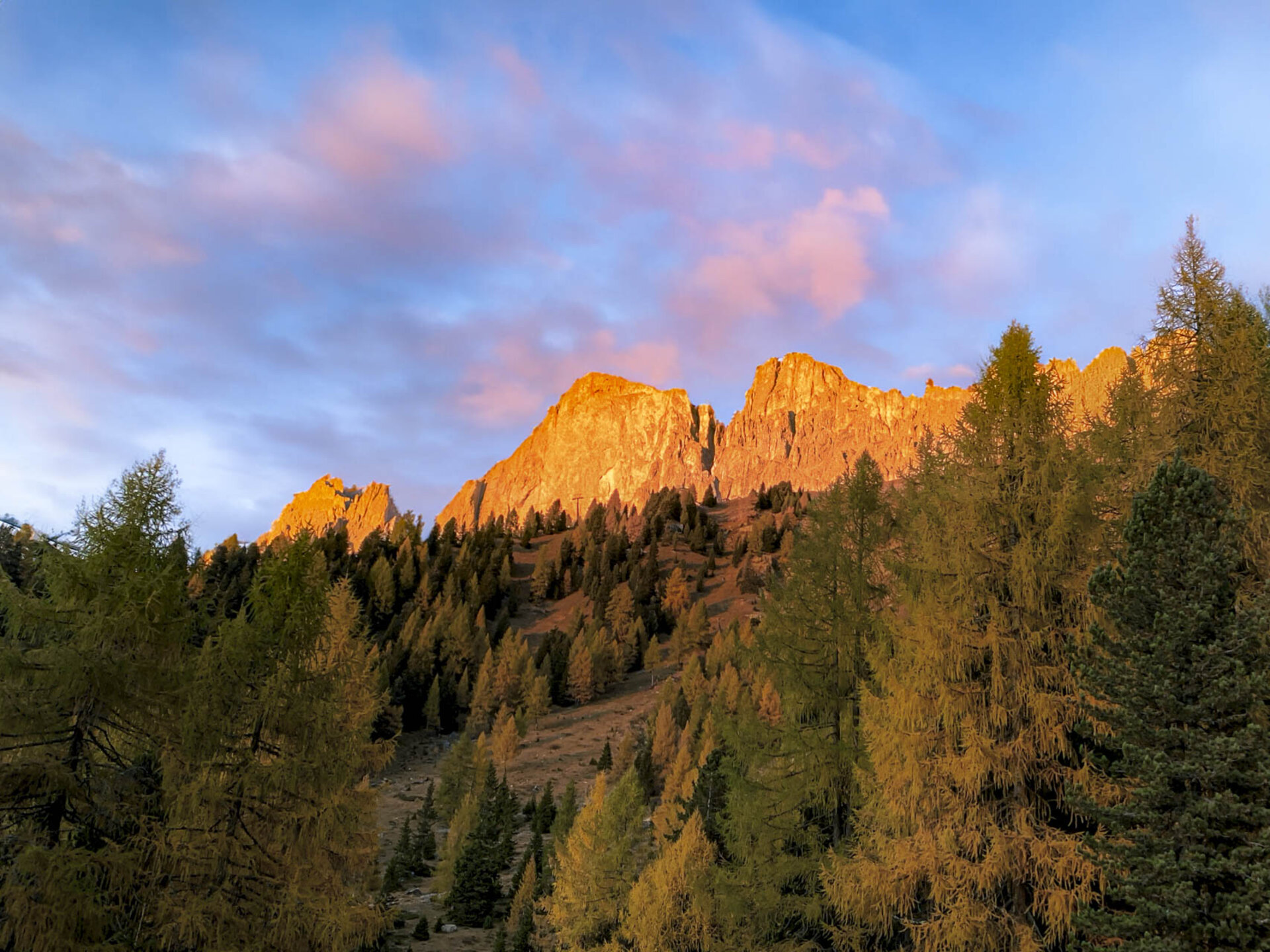 Appena superato il Passo si nasconde il lago di Carezza, piccolo gioiello dolomitico situato proprio sotto le pendici del Latemar, le cui imponenti cime si specchiano nelle acque cristalline del bacino. Guardando in lontananza noterai il Grand Hotel Carezza, imponente struttura che ospitò personaggi illustri, tra cui la Principessa Sissi, Winston Churchill e Agatha Christie, la quale scelse proprio questo luogo come ambientazione per i suoi romanzi “Poirot” e “I Quattro Grandi”.