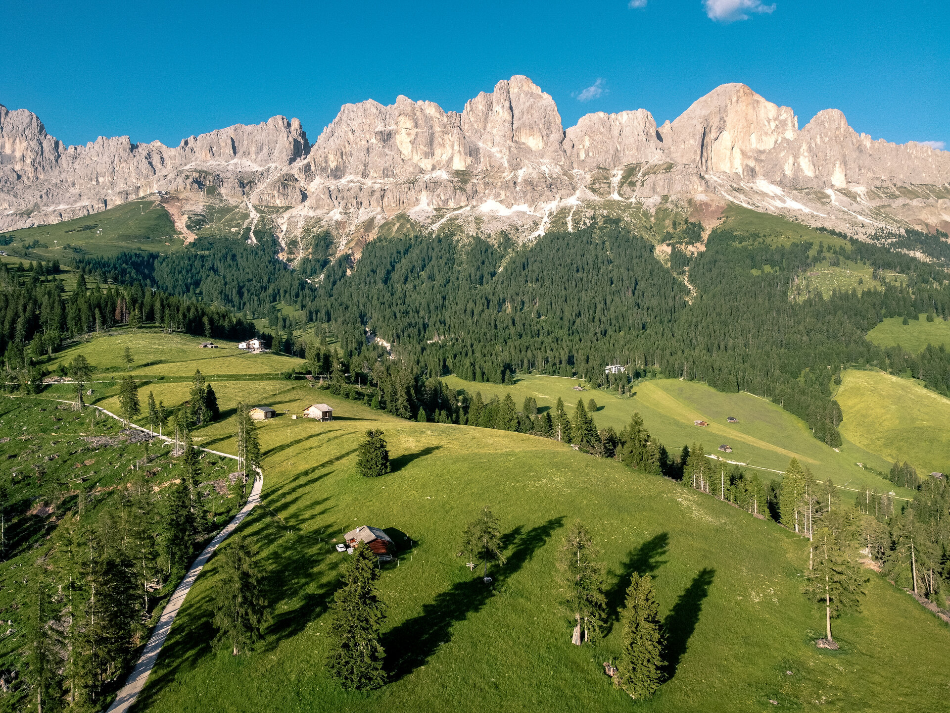 Il Passo Costalunga si colloca alle pendici del Latemar e ai piedi dell’anfiteatro del Catinaccio, con la Roda di Vael che lo sovrasta. Da questo valico, che indica il limite tra Trentino e Alto Adige, partono molte passeggiate, anche ad anello, grazie agli impianti di risalita che d’inverno consentono di sciare con soddisfazione nella modernissima skiarea. Il valico è noto anche come Passo Carezza grazie alla vicina presenza dell’omonimo lago dalle acque turchine che riflettono le cime del Latemar.