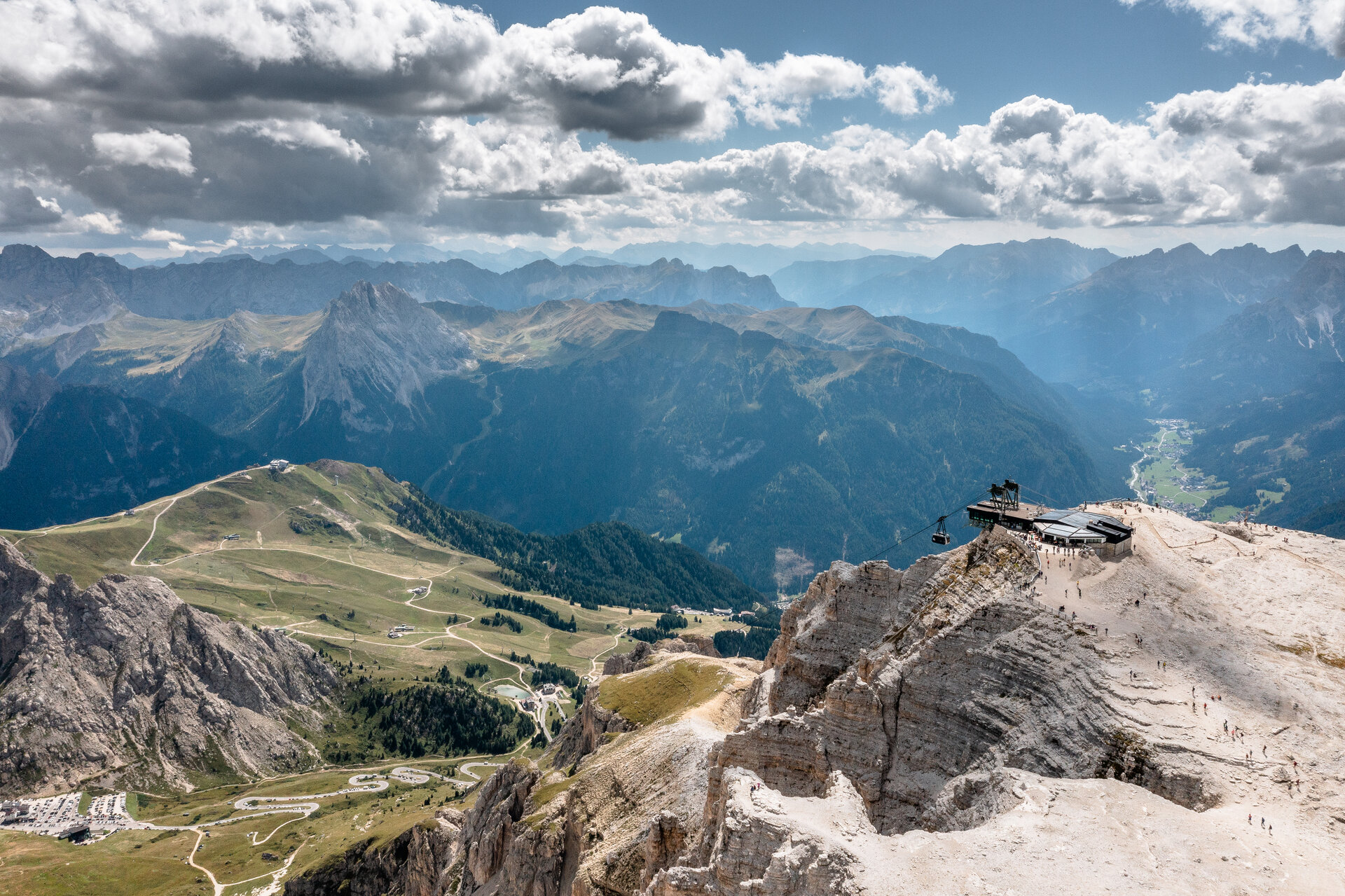 Il Passo Pordoi (2239 m), valico alpino dolomitico posto tra la Val di Fassa, in Trentino-Alto Adige, e la Valle di Fodom, in Veneto, è incastonato tra il Gruppo del Sella e il Gruppo della Marmolada. Percorrendo i 28 tornati dell’ultimo tratto della Strada delle Dolomites, è possibile raggiungerlo direttamente dal centro di Canazei.
