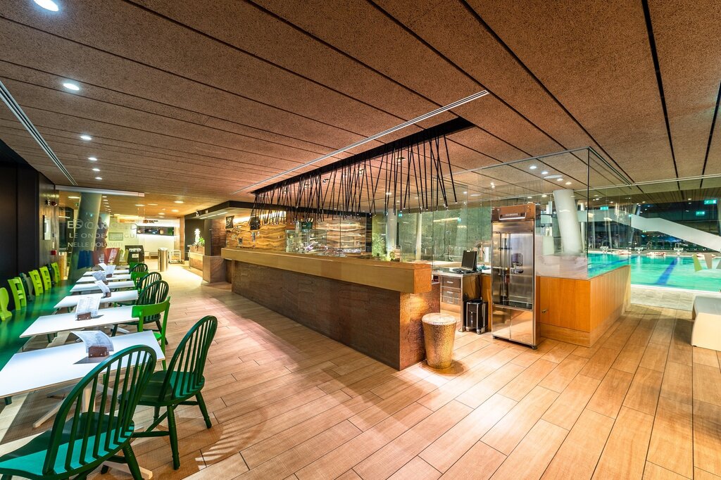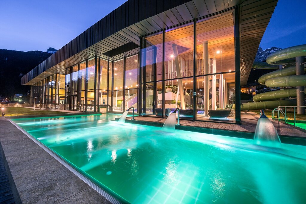 Dòlaondes significa "Segui le onde" in ladino: un invito a lasciarsi guidare dal movimento dell'acqua, simbolo di energia, leggerezza e armonia con la natura che abbraccia l'intera Val di Fassa. Nel cuore di Canazei, il centro si estende su oltre 2.400 metri quadri e offre spazi per nuotare, divertirsi e ritrovare equilibrio, con lo sguardo che si apre sulle cime del Gran Vernel e del Colac. Le sue quattro aree tematiche - Water & Fun, Eghes Wellness, Sport & Fitness e Eat & Drink - raccontano un'unica filosofia: stare bene, dentro e fuori l'acqua.