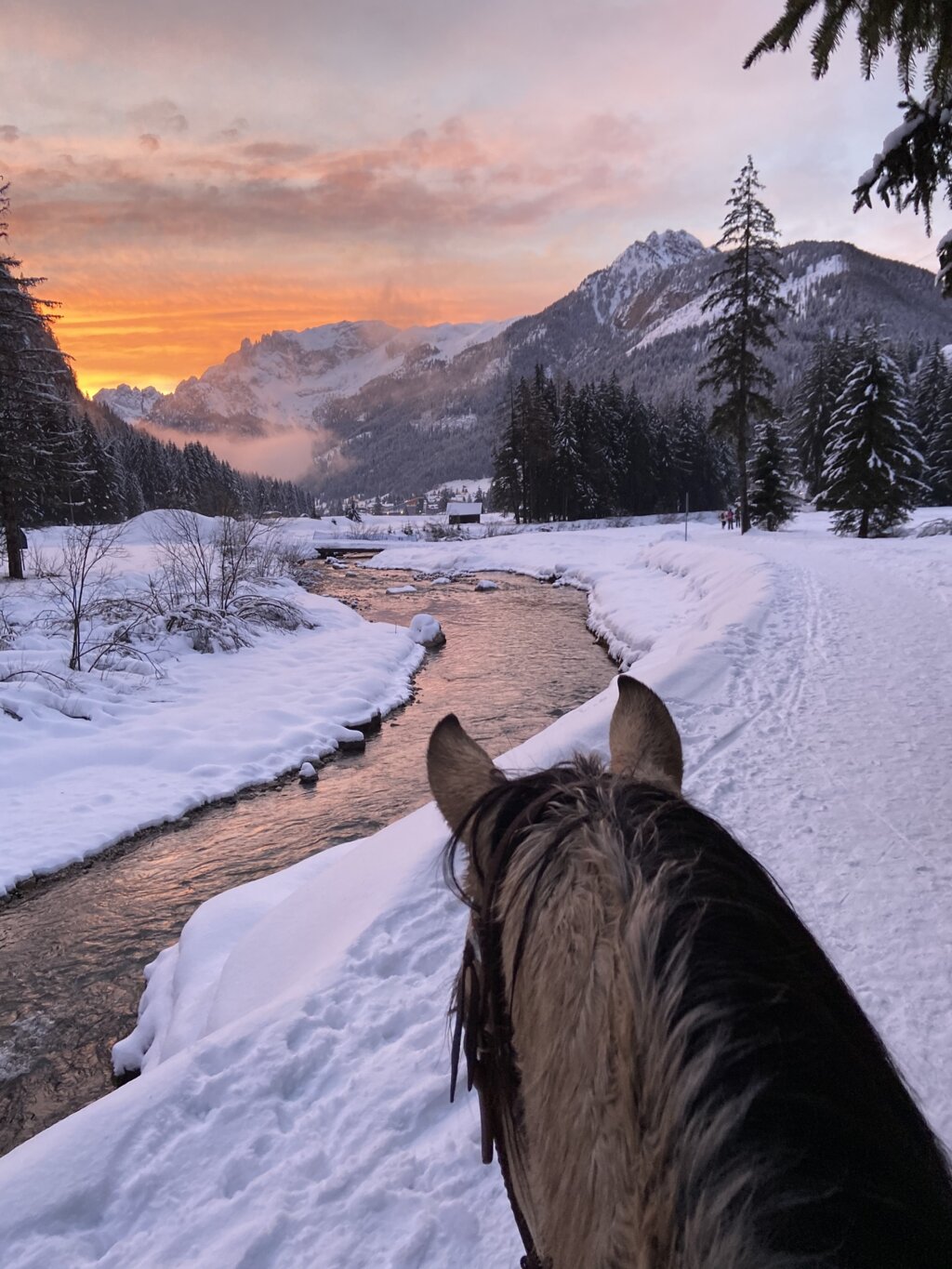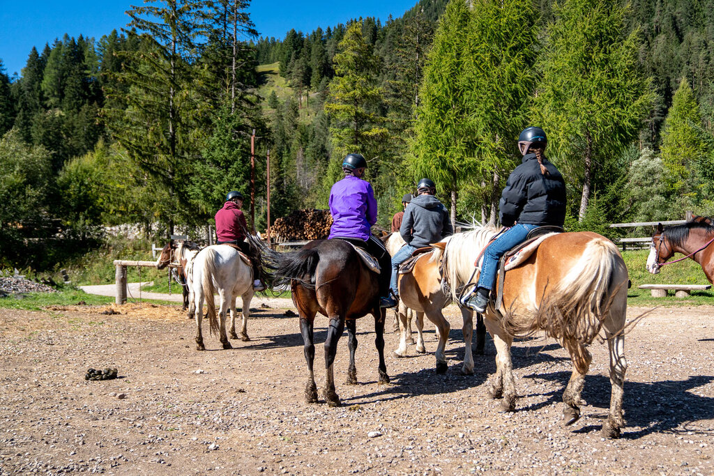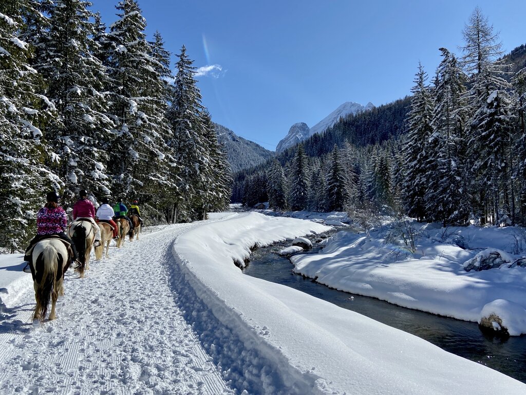 Carlotta e il suo staff organizzano passeggiate e lezioni, nel verde della natura o sulla neve, a partire da 30 minuti fino a trekking che durano una giornata intera, adatti a tutti. Si attraversano le distese prative che costeggiano il torrente Avisio e si sale, nel bosco, fino a punti panoramici per ammirare i paesi dall’alto con le cime del Pordoi e del Gran Vernel a portata di sguardo. Puoi prenotare uscite con pony per i bambini e cavalcate romantiche in coppia nella cornice delle Dolomiti. In inverno si pratica anche l’Equestrian Ski Dragging.