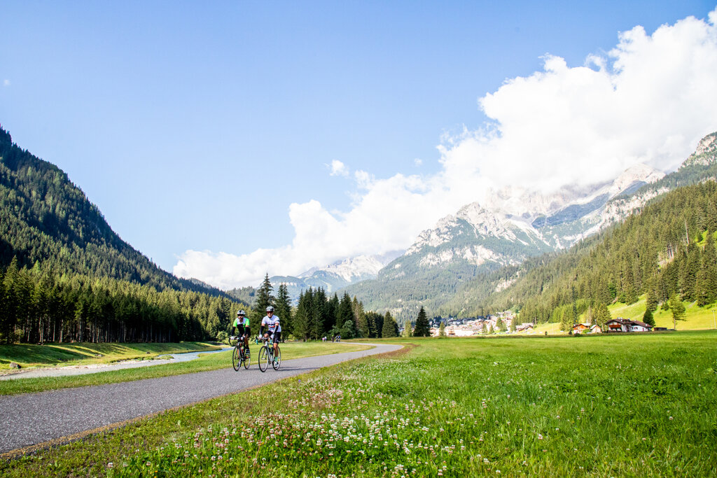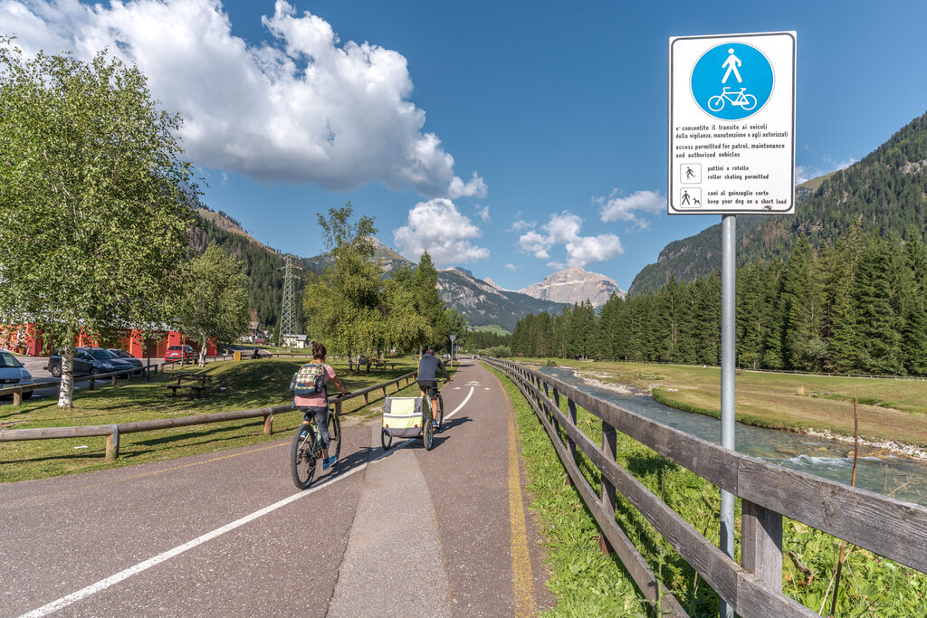Pedalare tra le Dolomiti piace sempre di più anche ai meno allenati che, da queste parti, possono contare sulla Pista ciclabile delle Dolomiti, un piacevole percorso di 47.5 km (3 ore il tempo medio di percorrenza), perlopiù in falsopiano. Da maggio ad ottobre si monta in sella da Alba di Canazei (1517 m) a Molina Fiemme (965 m), i capolinea delle valli e, al ritorno, si prende il Fassa & Fiemme Bike Express. Lo speciale bus da 30-50 posti, con rimorchio per l’attrezzatura, aiuta i ciclisti a rientrare a casa seduti comodamente a bordo. Tre corse giornaliere e sedici fermate permettono di salire o scendere in ogni paese, a seconda del punto di partenza e della meta d’arrivo.