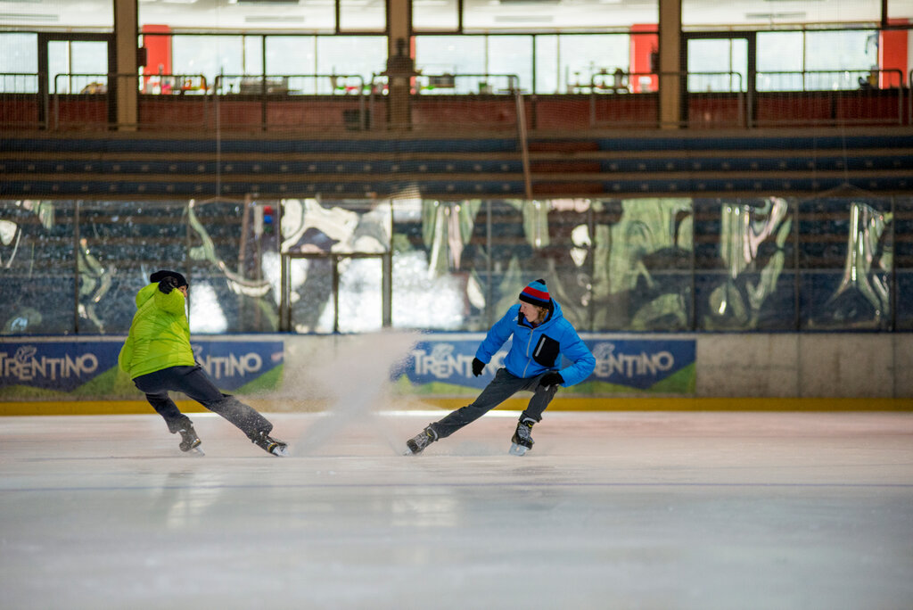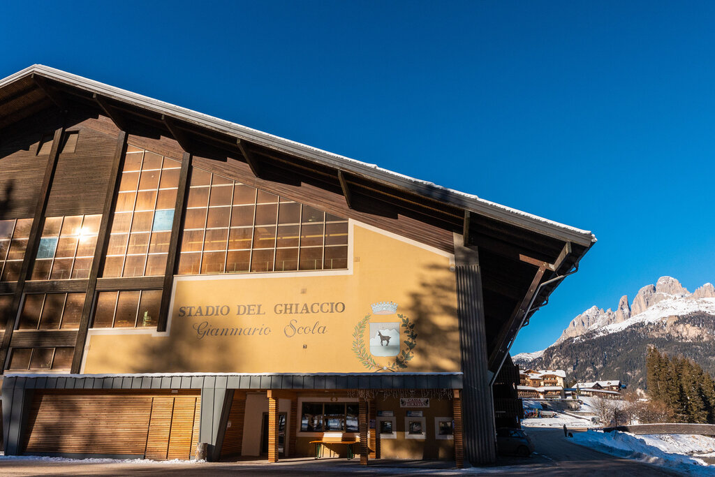 La piastra, candida, liscia e lucida, invita a essere solcata con slancio e leggerezza. Allo stadio del ghiaccio coperto "Gianmario Scola" di Alba di Canazei, una favolosa pista olimpionica (30 x 60 m a refrigerazione artificiale) è a disposizione dei principianti e di quanti, invece, sono padroni di piroette e arabesque, da eseguire sul filo di lama a ritmo di musica. La struttura di 12.000 mq, che può ospitare fino a 3.500 persone, permette di affittare i pattini e di prendere anche qualche lezione per apprendere la tecnica di base o migliorare lo stile. Gli accompagnatori possono assistere al di là delle balaustre, sugli spalti, oppure riscaldarsi al bar del palaghiaccio.
