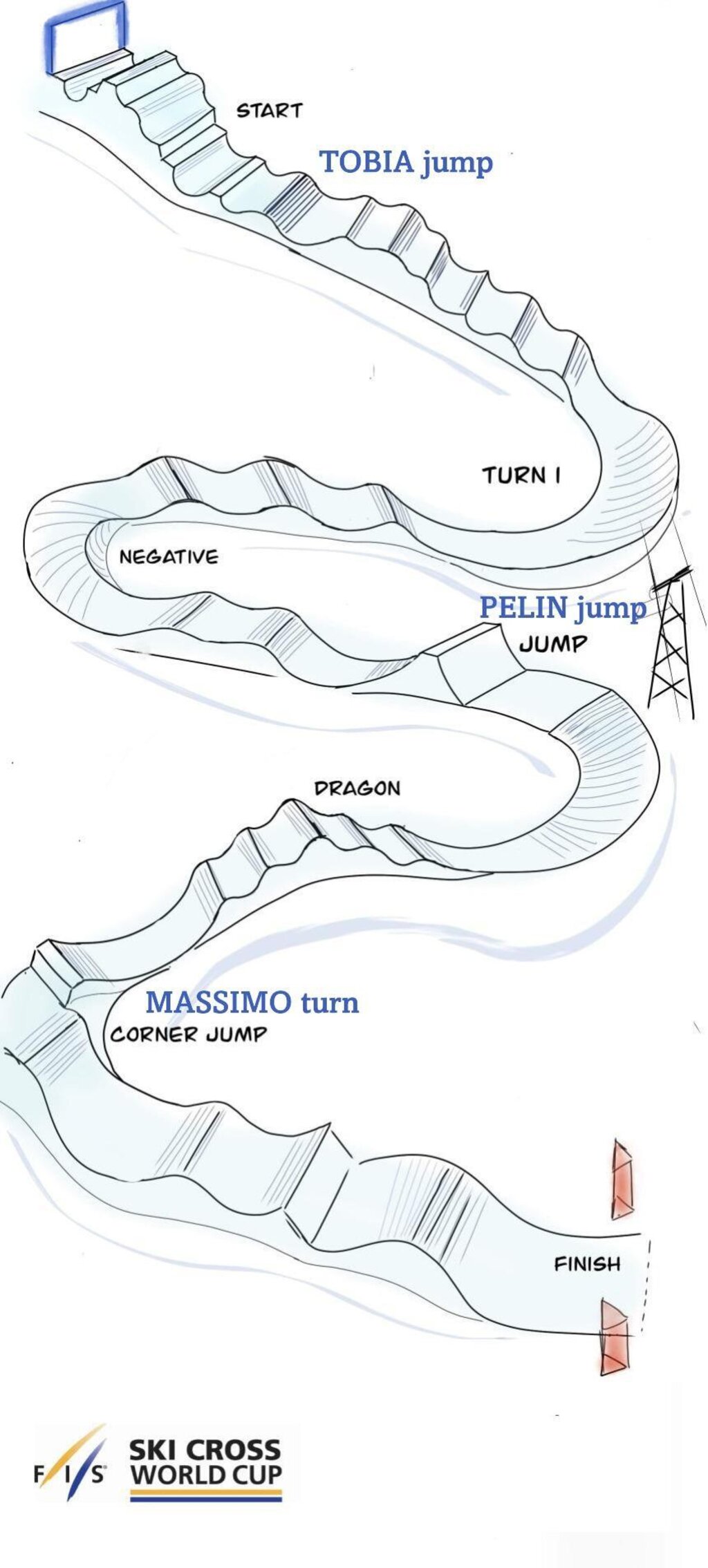 Il tracciato, lungo 1.300 metri e con 180 metri di dislivello, è stato progettato da Dario Dellantonio (direttore di pista), Mattia Giongo (direttore di gara) e dai tecnici locali. Curve insidiose, salti fino a 30 metri e sezioni combinate in rapida successione danno forma a una sfida cronometrata che promette ritmi serrati e colpi di scena fino al traguardo. Come da regolamento del format a eliminazione diretta (KO system), si affronteranno quattro concorrenti per manche: solo i primi due accederanno al turno successivo. Le velocità possono superare i 100 km/h, in un mix di precisione, strategia e potenza atletica.