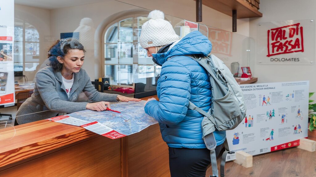 Possiamo consigliarti le cose da fare e da vedere, oltre a guidarti alla scoperta dei luoghi più affascinanti della Val di Fassa. Nei nostri uffici, aperti tutto l’anno, troverai personale altamente qualificato, professionale, che ti accoglierà sempre con un sorriso. Qui potrai:
